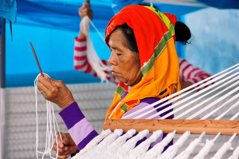 Today these buildings are used not only to harvest rainwater, they also provide a place for the social enterprises in the community to process food, hammocks, bags, baskets and batik products.